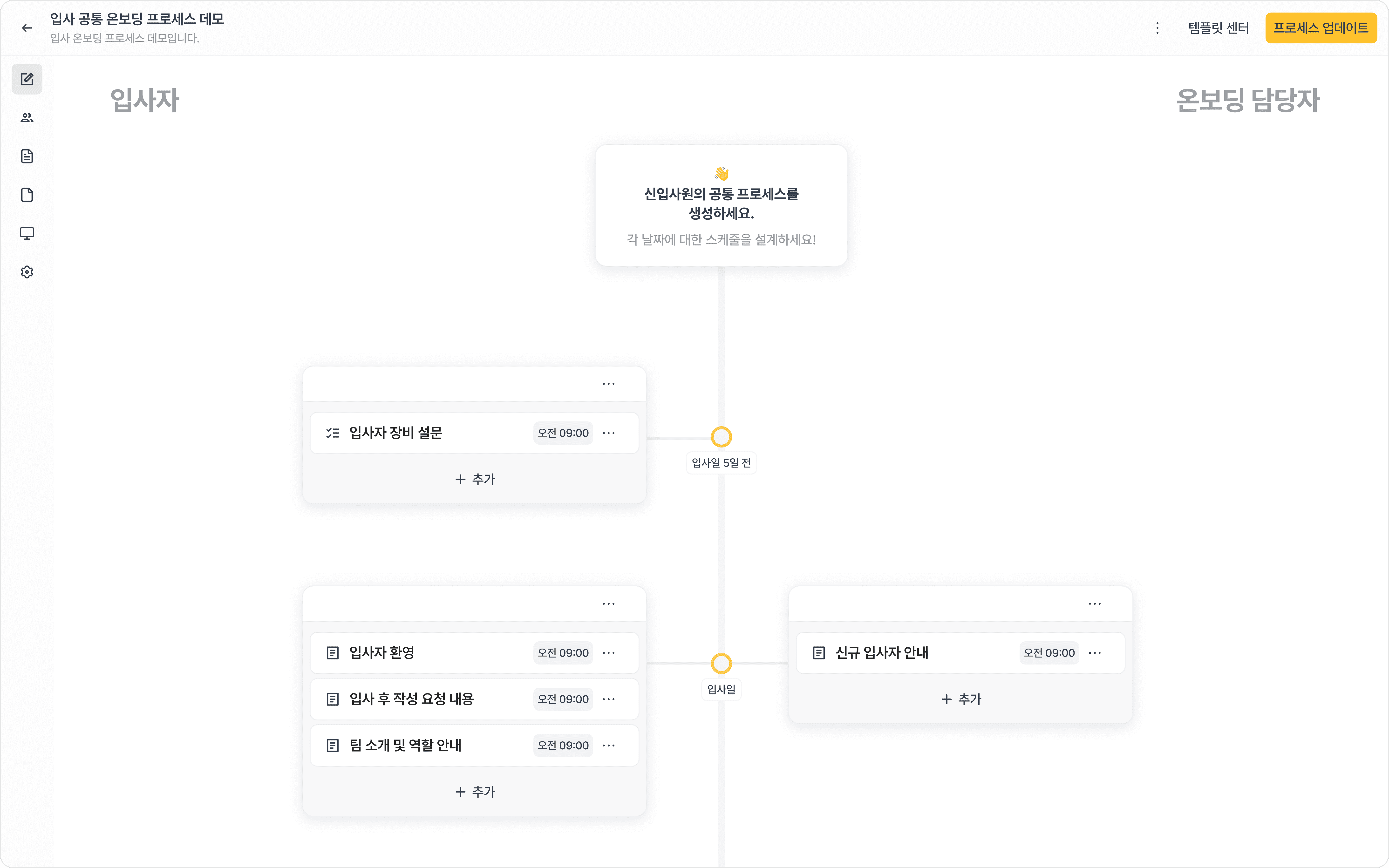 프로세스 대상에 맞춘 설문과 평가도 함께 진행하여 효율적인 온보딩을 완성하세요.